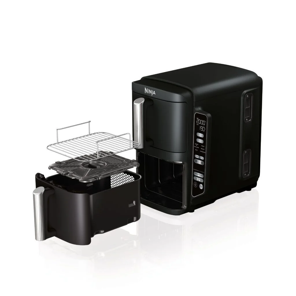Ninja SL300EU-ით თქვენ შეგიძლიათ მოამზადოთ ორი განსხვავებული კერძი ერთდროულად სხვადასხვა რეჟიმში, მაგალითად, შეწვით კარტოფილი ფრი ერთ ზონაში Air Fry ფუნქციით და მოამზადოთ ქათამი მეორეში. SYNC ფუნქციის გამოყენებით შეგიძლიათ დააკავშიროთ აეროგრილის პროგრამები, დრო და ტემპერატურა ორივე უჯრაში და ორივე კერძი მზად იქნება ზუსტად ერთსა და იმავე დროს!